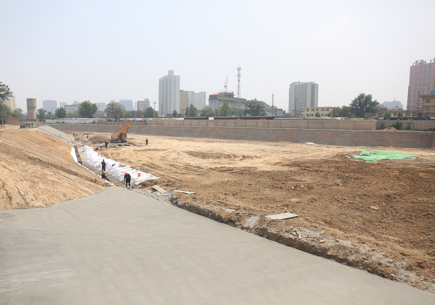 此次改造基于渠道原址,項目北起涑水街,南至火車站站北調(diào)節(jié)池西側(cè)提水泵站,全長4.26公里,批復(fù)主要建設(shè)內(nèi)容為:1、明渠段治理2.06千米;2、暗涵段清淤1.84千米;3、站北調(diào)節(jié)池出口段治理0.362千米;4、東留調(diào)節(jié)池及站北調(diào)節(jié)池治理;5、綠化2.6萬平方米;6、埋設(shè)排污管道11.63千米;7、中水回用工程及生態(tài)補水工程等。